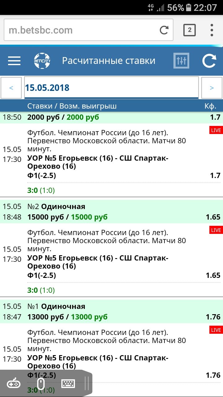 Неправильно рассчитанная ставка — 21030 RUB — Betcity — 4 Июня 2018