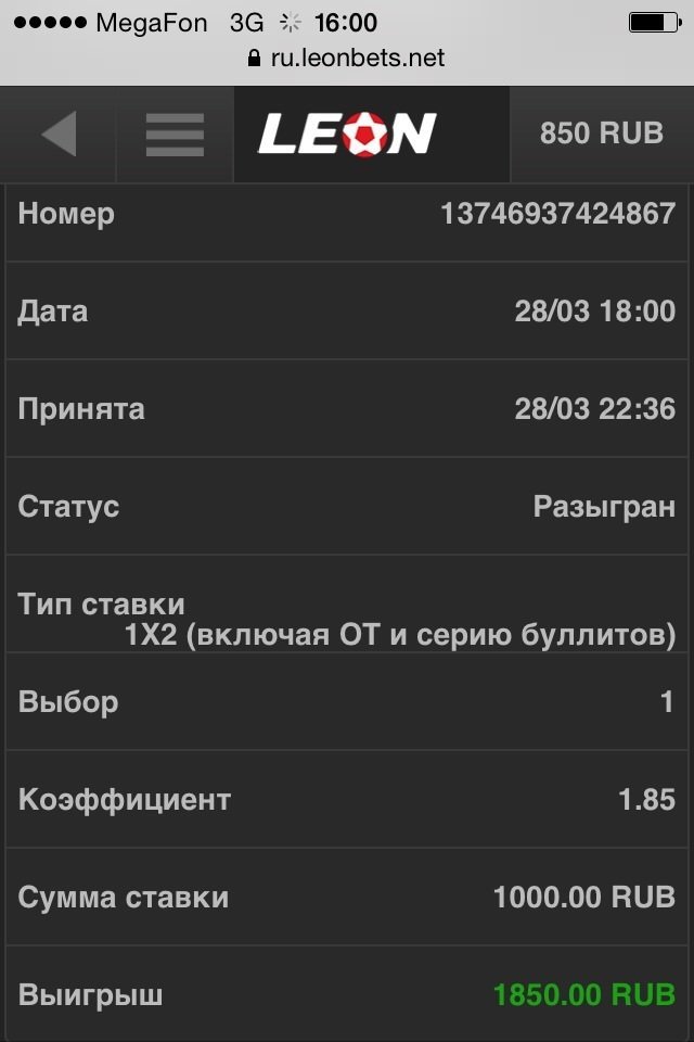 Жалоба на неправильно рассчитанную ставку БК Леон — 30 Марта 2015