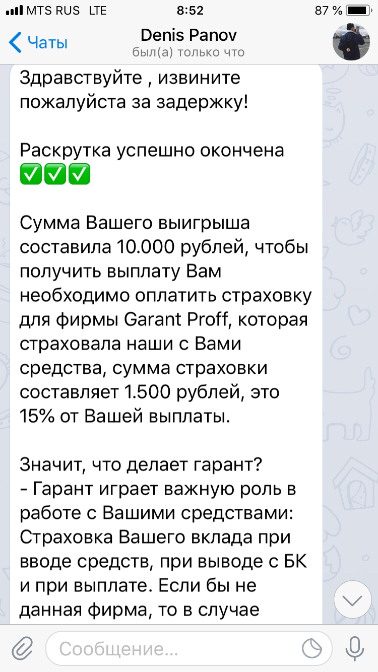 Этот человек теперь перебрался в телеграмм,будте осторожны мошенник