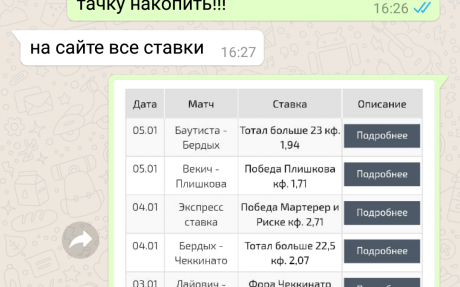 Здравствуйте! bevinto (barza) Полная лажа,у кого есть лишние деньги можете смело проверить,думаю таких мало ,долго искал добросовестного источника и нашёл кому интересно пишите,но с упомянутыми Ионой выше компаниями не советую ,а настаиваю не связываться ,сами подумайте за одну ставку сколь просят 3,200 кэф какой ( 1,9) ну примерно это что???друзья ,нормально?,а подписка есть 10 дней ?Чтоб ты ввалил и забыл ,?❌
