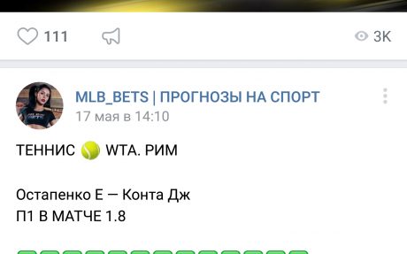 Например 17/05/2018 изменил в матче на теннис Остапенко — Конта, прогноз с П1 в первом сете на П1 в матче.